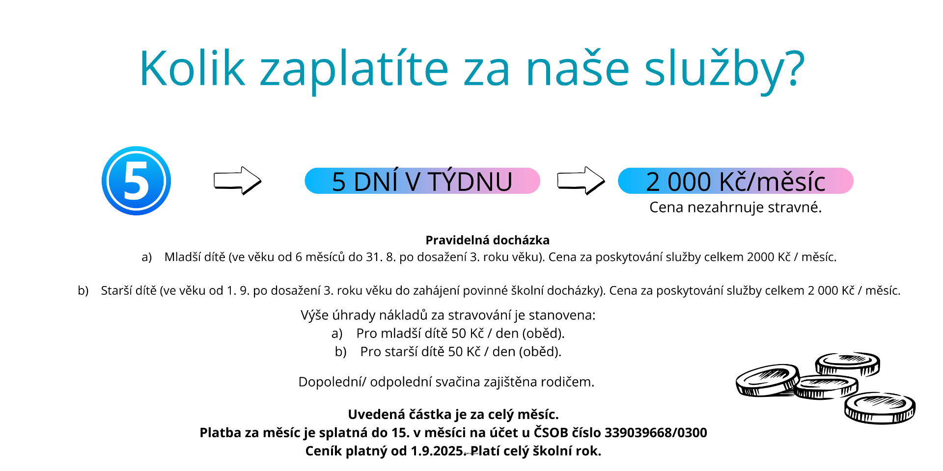 Počet dnů docházky, pro budování skupiny kamarádů preferujeme účast pět dní v týdnu