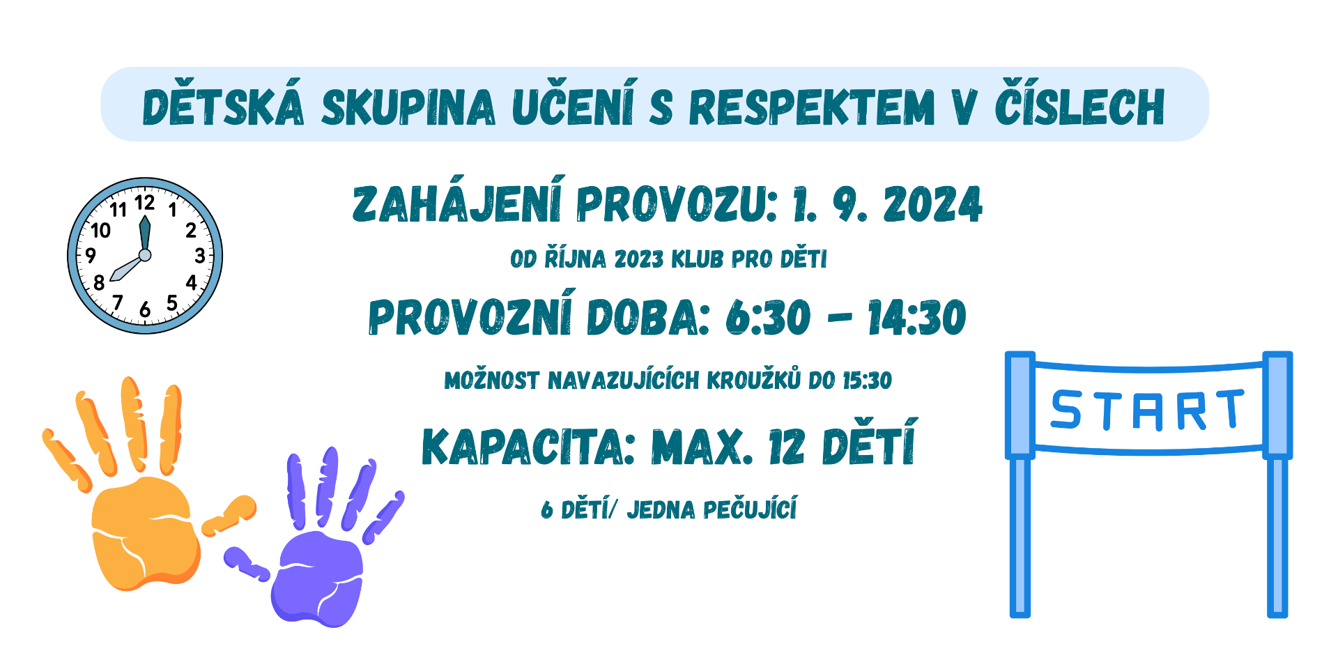 Naším cílem je věnovat se dětem od útlého věku s respektem a nabídnout jim takové podmínky, aby mohly růst a rozvíjet se podle svého individuálního tempa. Nejsme místem, kde Vaše dítě ,, jen,, pohlídají, ale náplň jednotlivých dní je pečlivě připravována tak, aby se dětem dostalo přesně takové nabídky, kterou v konkrétním období potřebují a vede k jejich osobnímu a dovednostnímu růstu. Jsme místem, kde se děti cítí spokojené, šťastné a v bezpečí.